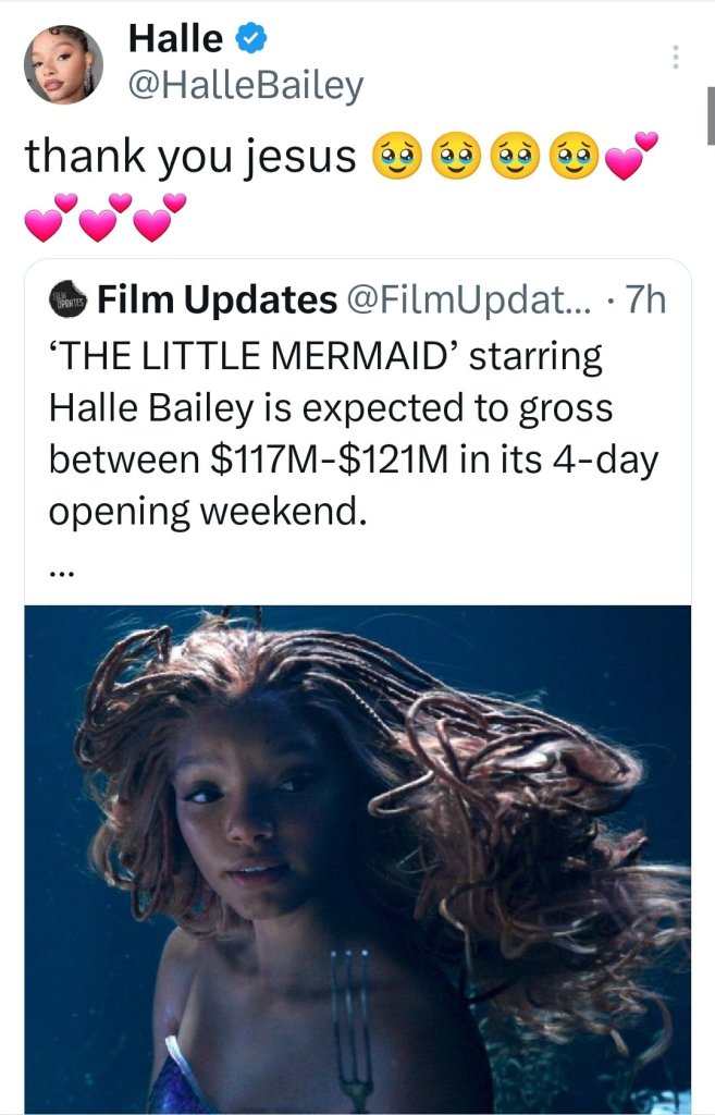 Disney’s latest live-action adaptation of one of its classics has become the 5th largest Memorial Day Weekend opening ever! “The Little Mermaid,” starring Grammy-nominated singer and actress Halle Bailey in the timeless role of Ariel, has reportedly brought in 163.5 at the global box office since it splashed onto theater screens on May 26! Media outlets such as Variety and Entertainment Weekly say that the earnings for the Rob Marshall-directed film also include a projected $117 million (at least) from ticket sales here in the United States.